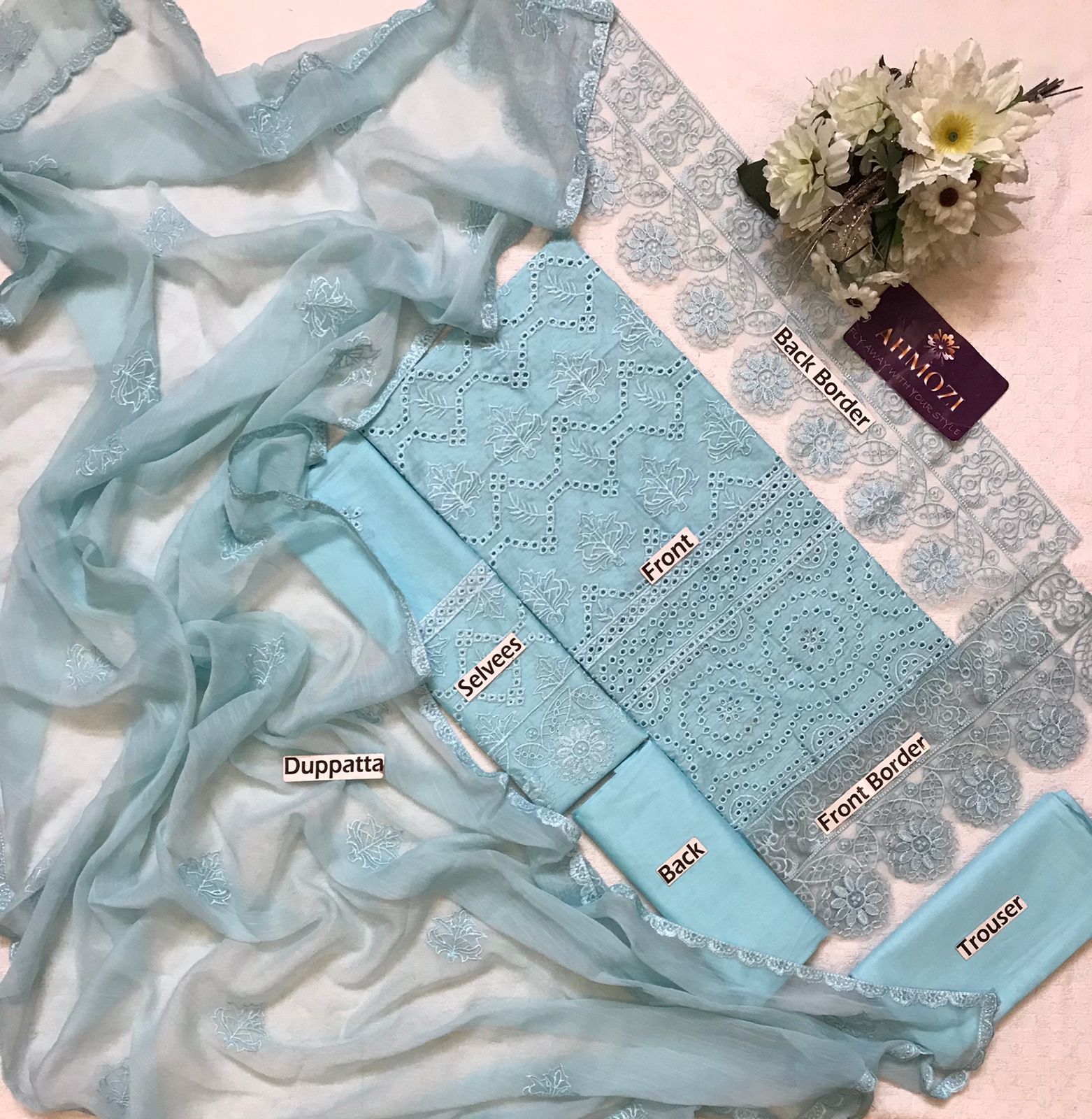 ▪Fully Heavy Embroidered Lawn Front With Chikenkari Work