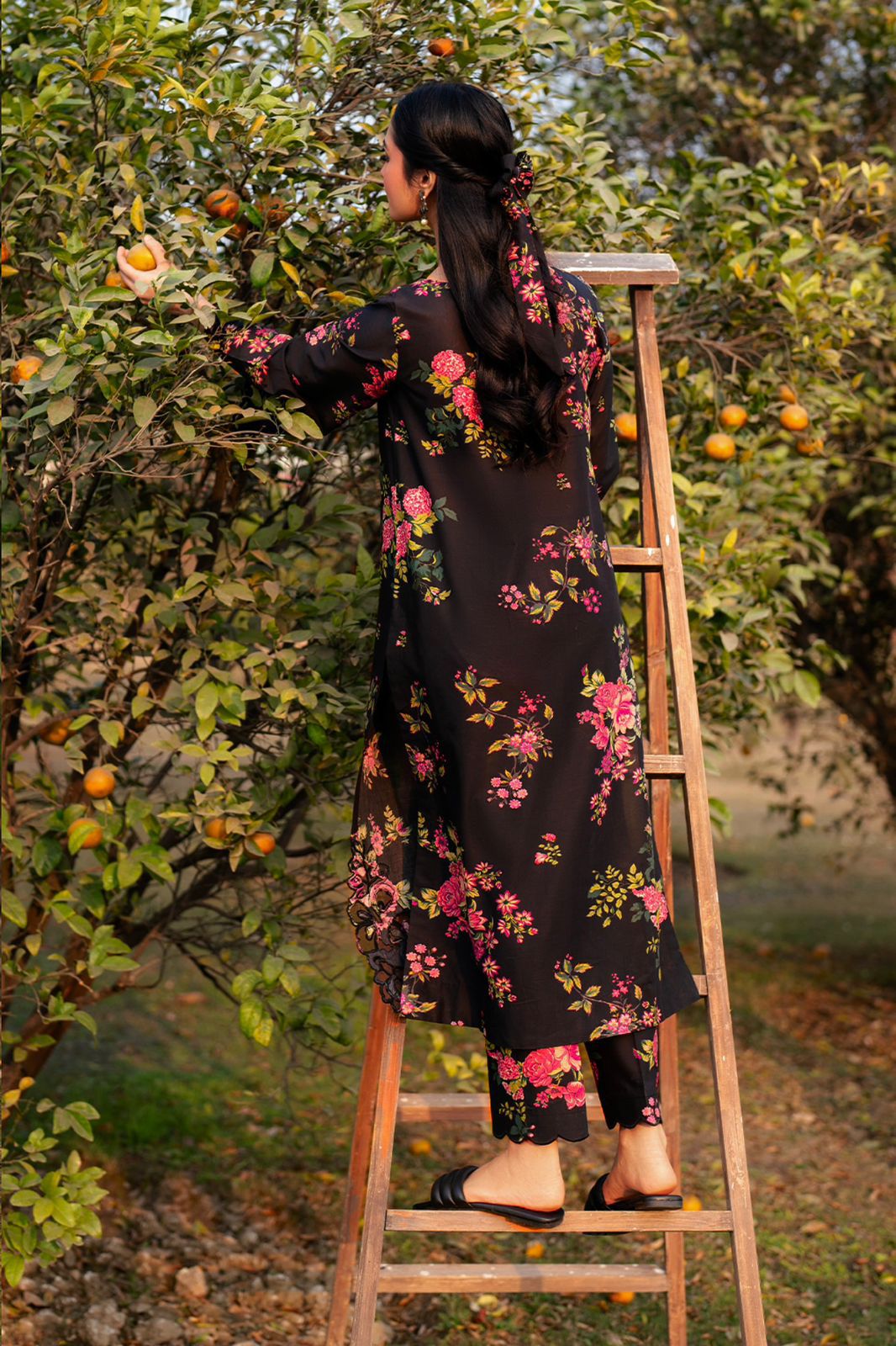ZARI EFFECT 3PC LAWN PRINTED SHIRT WITHPATCHES & VOIL DUBATTA