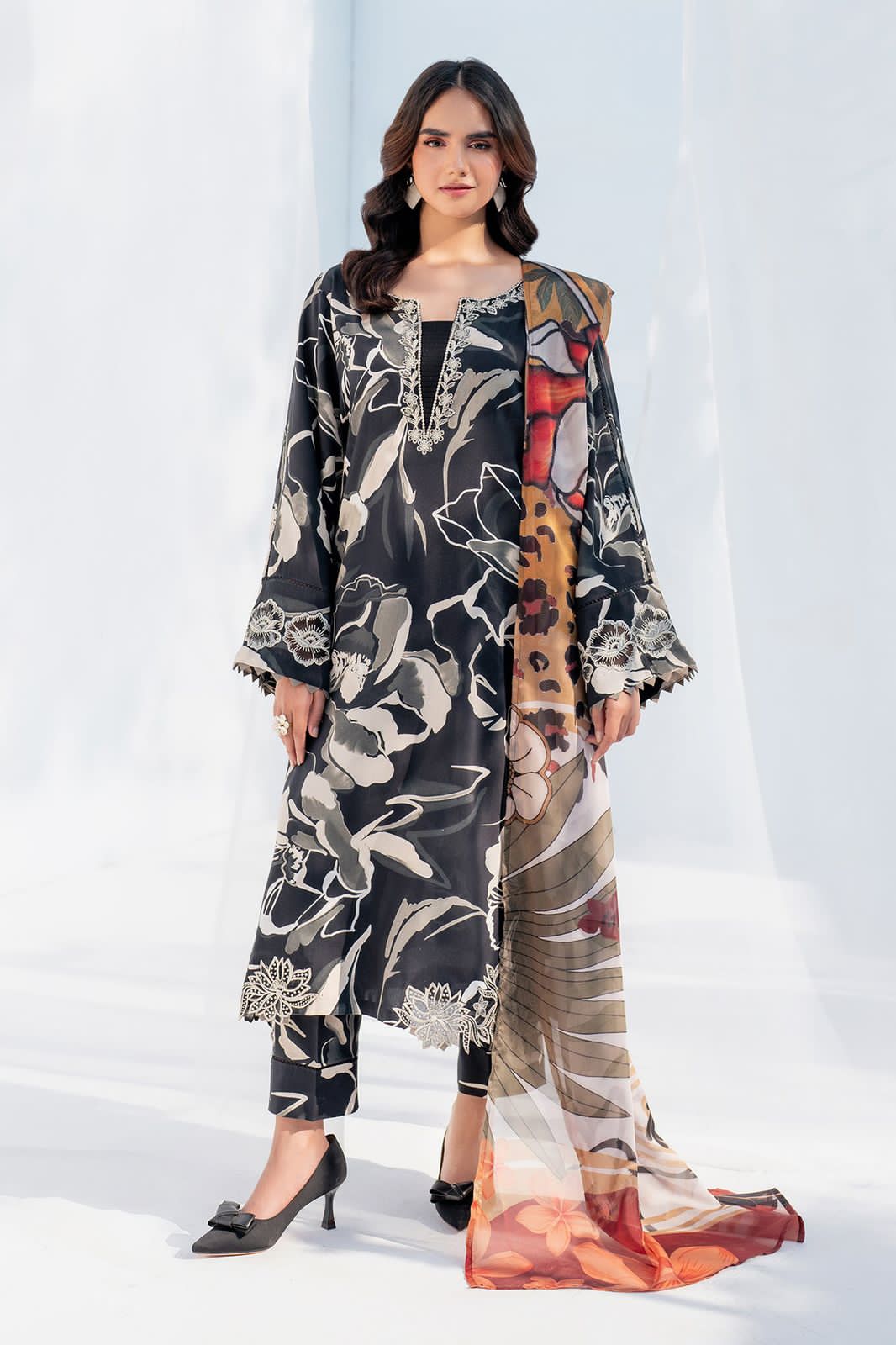 BAROQUE-3PC LAWN PRINTED SHIRT WITH PATCHES & PRINTED CHIFFON DUBATTA